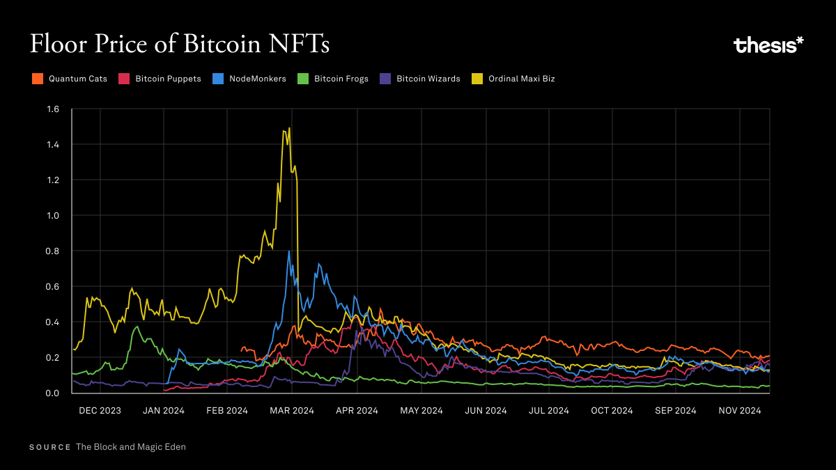 The year witnessed significant shifts in Bitcoin's collectibles ecosystem, with attention cycling between BRC-20s, Ordinals, and Runes. These innovations drove substantial spikes in transaction fees and network activity, though their long-term sustainability remained questionable. While the debate between Bitcoin purists and innovators intensified, research showed inscriptions' impact on blockchain size was minimal. This experimentation with Bitcoin's base layer capabilities led to broader discussions about scalability.